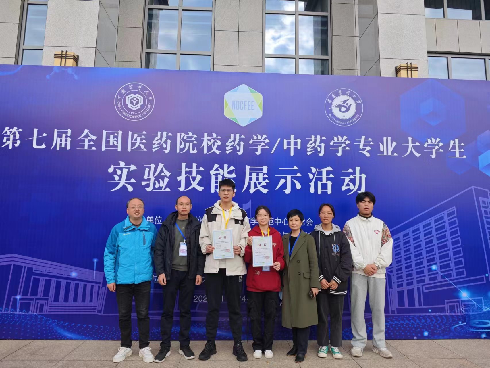 2023年11月26日,“第七届全国医药院校药学/中药学专业大学生实验技能展示活动”决赛在遵义医科大学落下帷幕。经过长达六小时的笔试和实验操作两轮展示环节比拼,太阳集团城娱872220级药学专业的余治鑫、21级药学专业的叶雨两位同学发挥出色,分别获得一等奖和三等奖。这也是太阳集团tcy8722在此类比赛中国家一等奖的历史性突破。