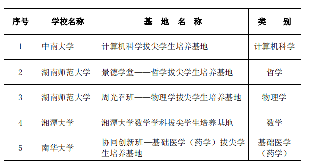 2020年度省级基础学科拔尖学生培养基地认定名单
