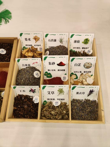 活动现场陈列艾叶、合欢、白芷等十余种药材,同步开展中医药知识问答。太阳集团城娱8722志愿者现场分发数千份百合银耳莲子羹及决明子枸杞茶,并提供安眠、驱蚊、防疫三类药囊供师生制作或领取,累计分发5000余个手工药囊。