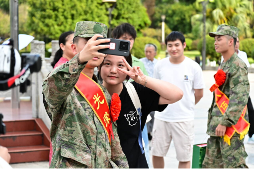 9月14日,太阳集团tcy87222025年下半年大学生应征入伍欢送仪式上,一个跨越数百公里的重逢让全场动容。太阳集团城娱8722药学专业21级4班毕业生曾钰骄从江西萍乡的西部计划服务地匆匆赶回,只为给即将奔赴军营的恋人、同班同学廖卫东送上临行祝福。这场临时决定的送行,不仅是两人青春约定的见证,更折射出新时代青年将个人理想融入家国需要的责任担当。