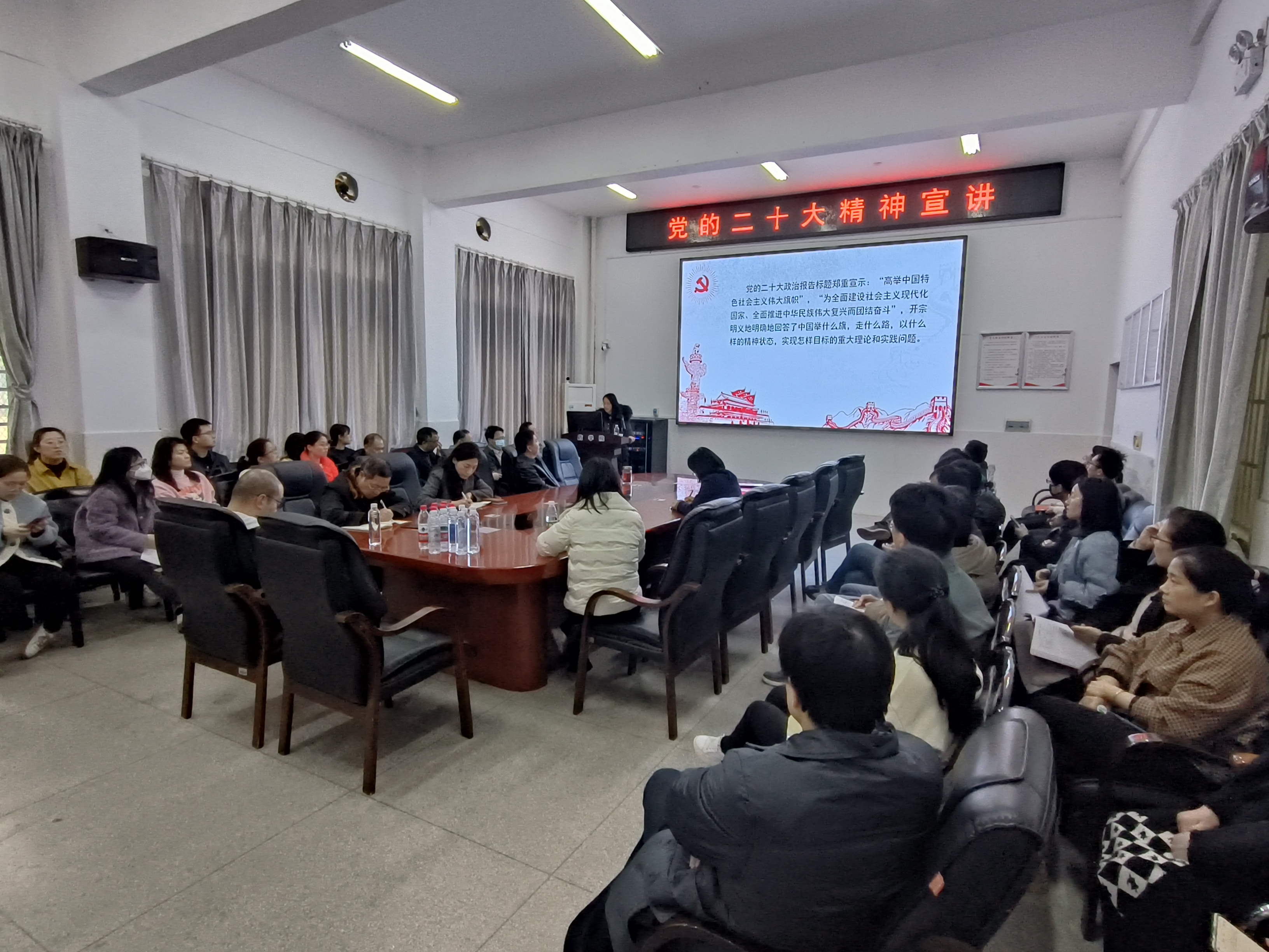 3月30日下午,太阳集团城娱8722党委在药学楼B101会议室举办党的二十大精神宣讲讲座,马克思主义学院徐艳红教授主讲,院党委书记袁中华主持,50余名教职工参加了讲座。